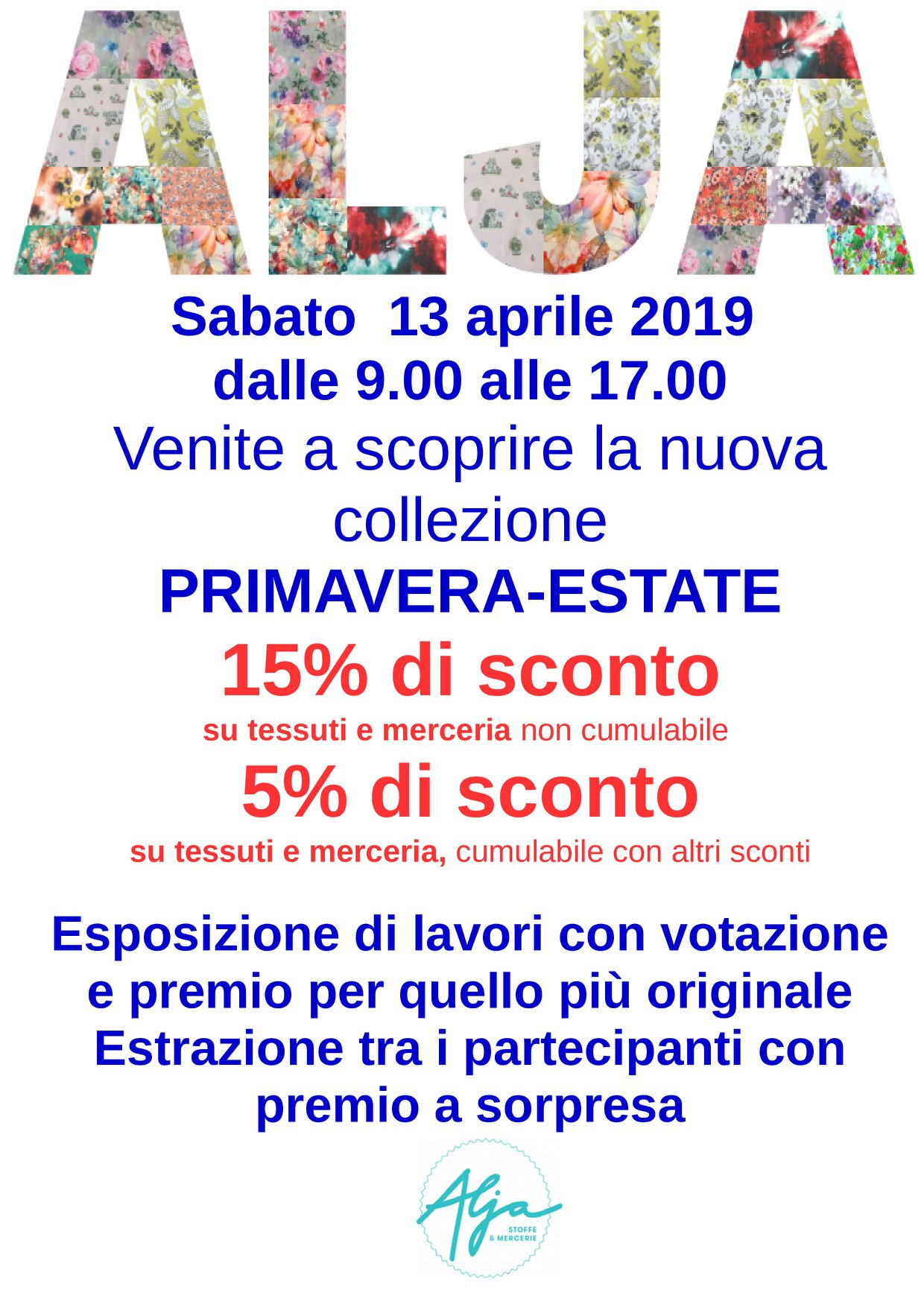 Sono stata invitata a partecipare ad un concorso di un negozio di tessuti, Alja, a Bellinzona. Diversi artisti sono stati chiesti di creare qualcosa con loro tessuti che poi viene esposto in negozio. La gente può votare in negozio da sabato 13 aprile. Perciò fate un salto nel negozio e votate per me! Lo stesso sabato faccio anche la mia vendita del mio stock, perciò non avete scuse per non venire a Bellinzona! Il negozio si trova in Viale Stazione 29.